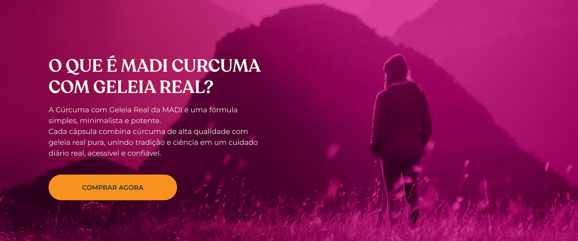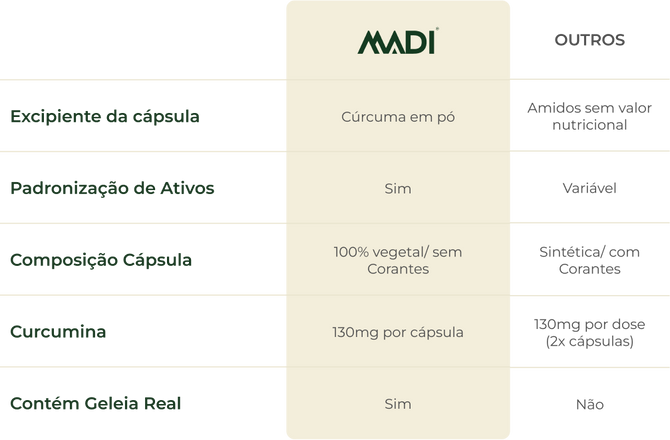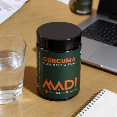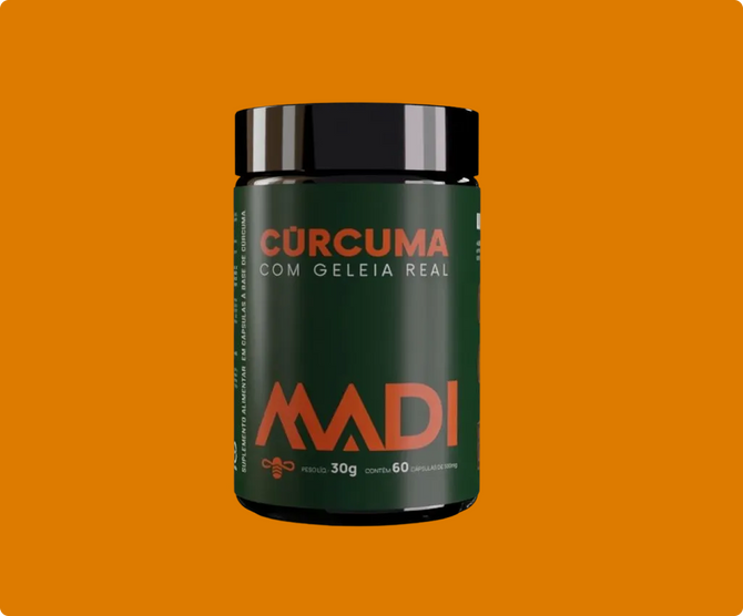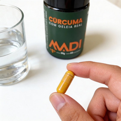 Cúrcuma pura combinada com geleia real para um cuidado natural e potente todos os dias.